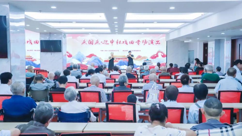 9月27日下午,杭州金诚护理院会议大厅内掌声阵阵、曲韵悠扬,一场主题为“戏韵迎双节,情暖医患心”的戏曲专场演出在此热闹上演。此次演出特邀蜀山街道戏曲协会,为住院患者、陪护家属及在岗职工带来了一场精彩的传统文化盛宴,让大家在就医与工作之余,感受传统艺术的独特魅力,缓解节日期间的思乡之情。
