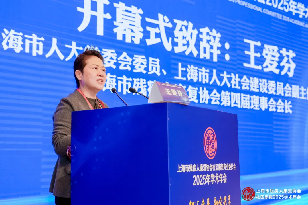 上海市残疾人康复协会第四届理事会会长王爱芬代表协会对本次学术年会的召开表示祝贺。王会长在致辞中指出,社区康复是实现残疾人“人人享有康复服务”目标的关键环节,是打通服务“最后一公里”的重要保障,其重要性不言而喻。她强调,当前社区康复体系建设和发展仍面临专业人才队伍紧缺、服务供给不均、康复理念社会认知不足等多重挑战,并呼吁广大医疗机构、社区组织及相关社会力量凝聚共识、协同发力,共同突破发展瓶颈,携手推动上海市社区康复服务迈向更高质量、更可持续的新阶段。