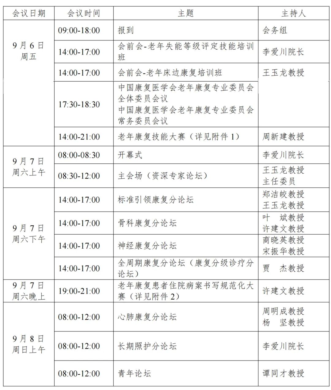 本次大会以“机构与社区协同、推进老年康复事业发展”为主题,设有1个主论坛和7个分论坛(标准引领康复分论坛、神经康复分论坛、骨科康复分论坛、心肺康复分论坛、老年骨科康复分论坛、青年分论坛和长期照护分论坛),邀请众多国内外老年康复领域知名专家进行专题报告。