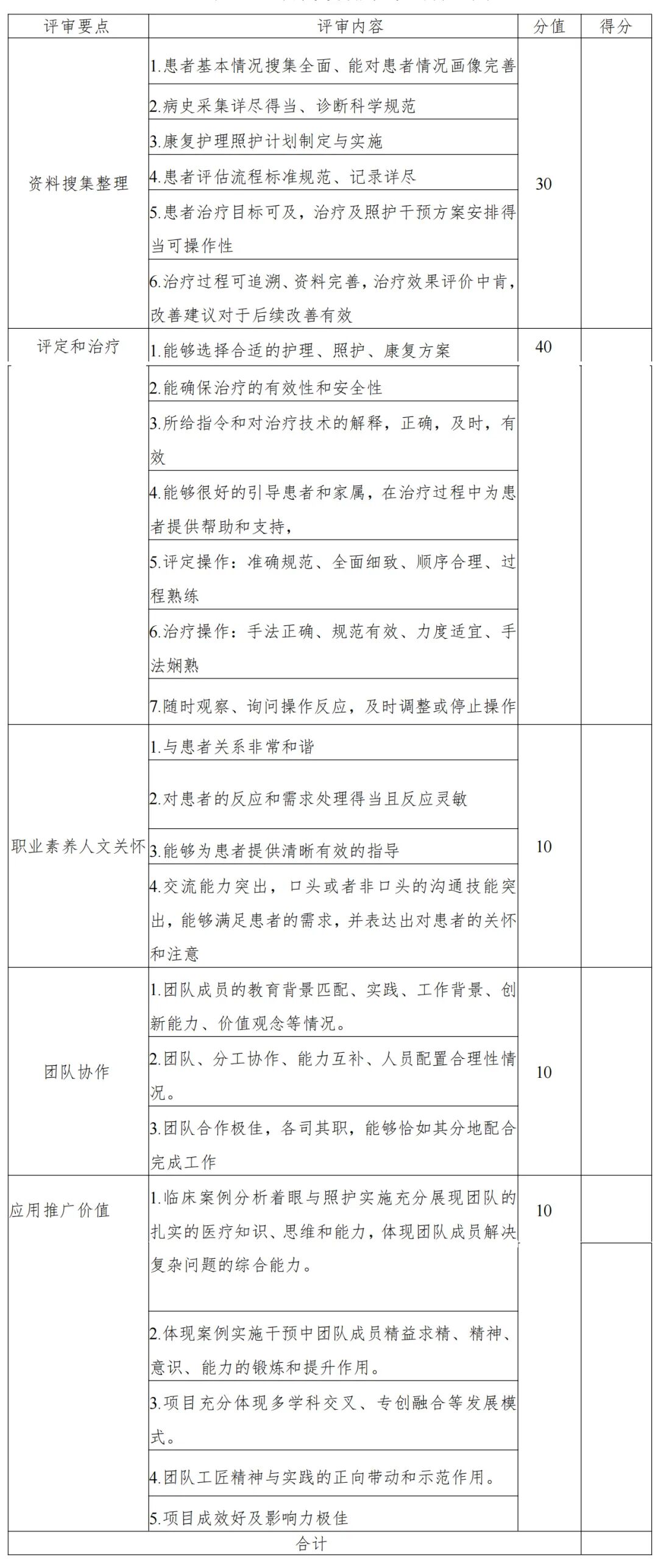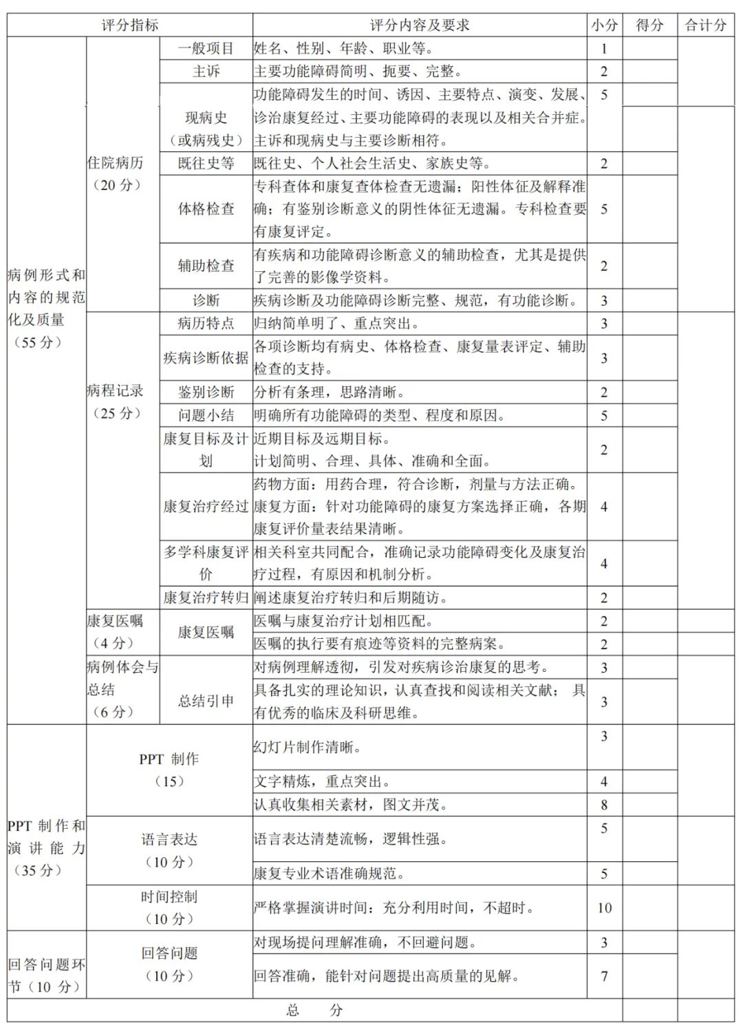 3.康复专科病案书写规范化大赛评分细则见以下表格。
