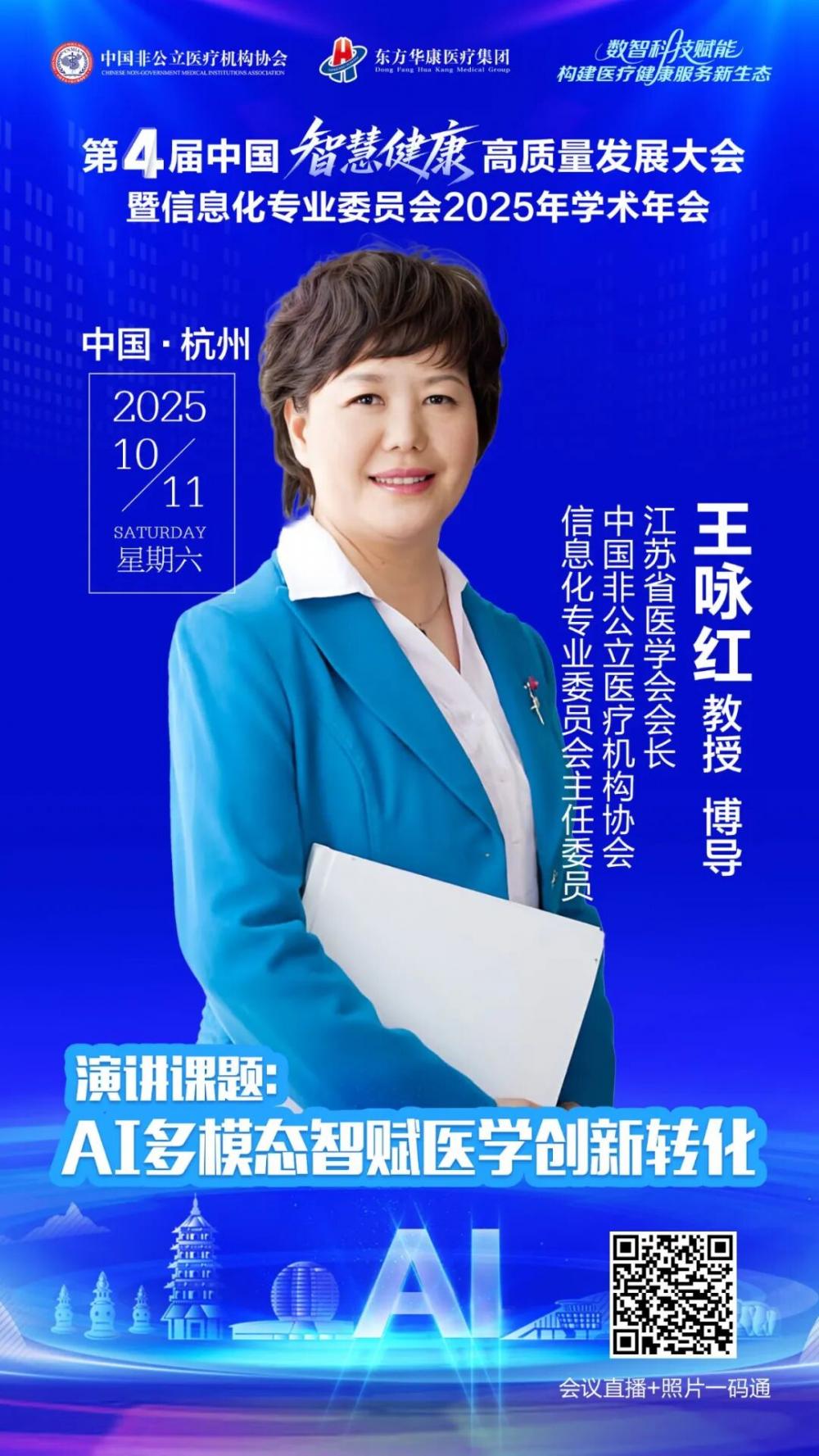 2025年10月11日,第四届中国智慧健康高质量发展大会暨信息化专业委员会2025年学术年会即将启幕。在本此主会坛上,中国非公立医疗机构协会信息化专业委员会主任委员、江苏省医学会会长王咏红教授将带来《AI多模态智赋医学创新转化》的主题分享,深度解析这一前沿技术如何赋能医学实践。