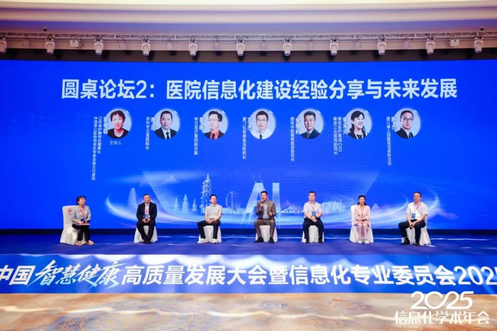 随后,“医院信息化建设经验分享与未来发展”圆桌对话环节由协会信息化专委会副主任委员、江苏省护理学会理事长霍孝蓉主持,苏州市立医院院长陈彦,树兰医疗集团副总裁姜*,厦门弘爱康复医院院长方杰,西安中医脑病医院副院长卓坤利,德驭医疗集团CI0、南京江北医院副院长朱元元,浙江省人民医院信息科主任陈杰作为嘉宾,围绕智慧医院建设、康复医疗信息化、中医药数字化转型等热点话题分享了各自医院信息化实践经验与前瞻思考,深入剖析智慧医院建设面临的挑战与应对策略。
